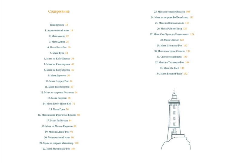В этом необычном путешествии к самым отдаленным маякам на планете вы познакомитесь не только с особенностями их архитектуры, внутреннего устройства и технического оснащения, но и со множеством увлекательных историй, связанных со строительством маяков и с их смотрителями, с кораблекрушениями и с мистическими происшествиями. Это и рассказ о слепом смотрителе маяка за полярным кругом, о пришедшей на помощь терпящим бедствие морякам бесстрашной девушке, о призраке мичмана, являющемся на маяк каждую ночь и выстукивающем на пишущей машинке некое предостережение, о странном человеке, который предпочел укрыться от всех в башне в открытом море… В этих историях сходятся мотивы и творческие горизонты Жюля Верна, Эдгара Аллана По, Вирджинии Вулф, проведшей детство на маяке, Редьярда Киплинга, Рэя Брэдбери и других великих писателей, стремившихся поведать миру об одиночестве, о тревоге, о храбрости и счастье. Текст сопровождают великолепные иллюстрации, морские карты и масштабные планы с указанием точных координат маяков и их технических характеристик — дается схема каждого маяка в разрезе, его точные координаты и параметры светового сигнала, назван инженер, время строительства и введения в эксплуатацию, указано, функционирует ли маяк сейчас или заброшен, какова высота его башни, высота огня над уровнем моря, дальность видимости огня, а также приводятся многие другие интересные сведения. «Перед вами не просто книга о маяках. Это способ познать нас самих, отраженных в зеркале человеческой природы, задаться вопросом, способны ли мы жить в одиночестве и насколько мы зависим друг от друга в борьбе за выживание». (Хосе Луис Гонсалес Масиас)