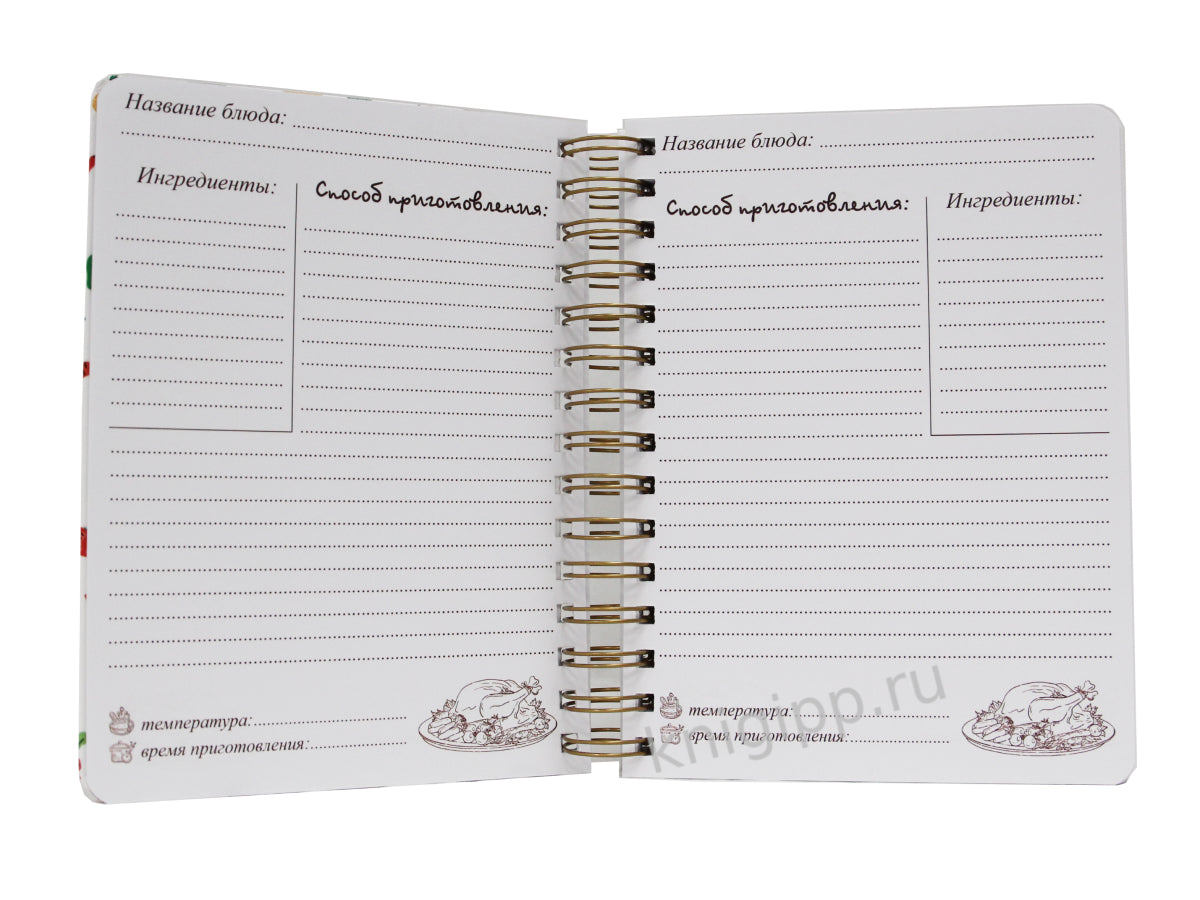 Книги для записи кулинарных рецептов будут отличными помощниками для тех, кто любит готовить и собирать любимые рецепты. Стильное лаконичное оформление, удобный формат, функциональная сетка для записи рецептов, таблица мер и весов – всё это сделает покупку очень приятной!Внутренний блок: офсет.Линовка: линия.Количество листов: 80.Формат: 150х196 мм.Крепление: двойная спираль.Обложка: твердая.Закругленные уголки.