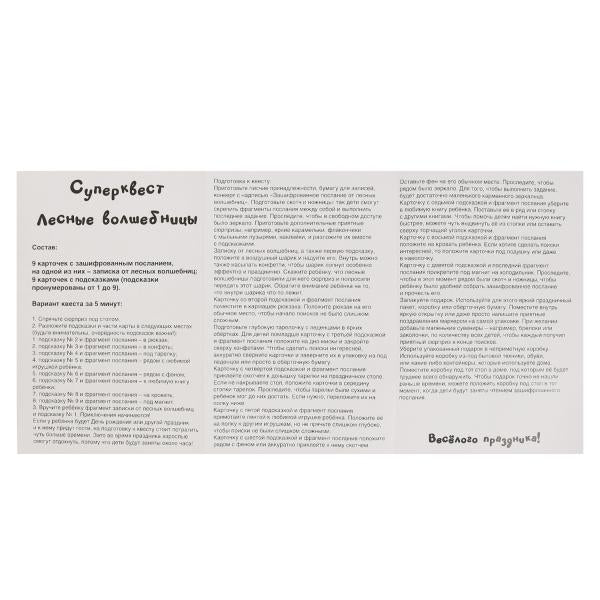 Карточная игра «Квест. Лесные волшебницы» ТМ «Умные игры» - отличный подарок для маленькой любознайки.Комплектация и особенности:- 18 игровых карточек с заданиями и подсказками- правила игры (инструкция для родителей)- красочный дизайн- продолжитель