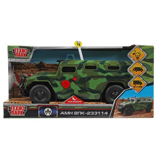 Машина пластик свет-звук АМН ВПК-233114 ВОЕННЫЙ 21 см, двери, инерц, кор. Технопарк в кор.2*18шт