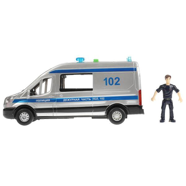 Машина пластик свет-звук FORD TRANSIT ПОЛИЦИЯ 22,5 см, двери, серебр, кор. Технопарк в кор.2*18шт