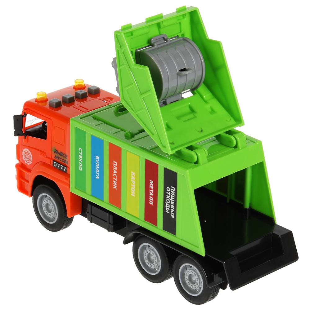 Машина пластик свет-звук KAMAZ МУСОРОВОЗ 30 см, бачок, двер, инер, зел, кор. Технопарк в кор.2*12шт