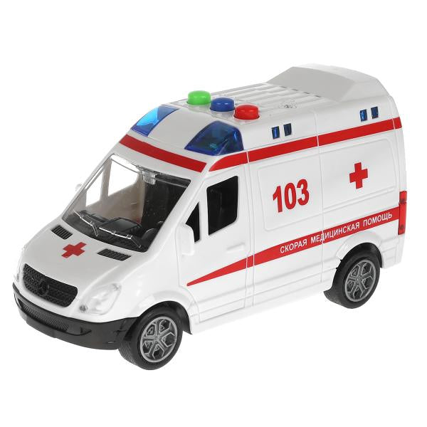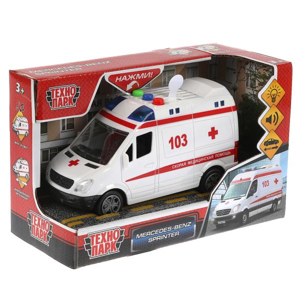 Пластиковая модель «Mercedes-benz Sprinter. Скорая помощь» ТМ «Технопарк» - прекрасный подарок для ребёнка:- световые эффекты- звуковое сопровождение- инерционный механизм (поставьте машинку на ровную поверхность, потяните за корпус назад, отпустите -
