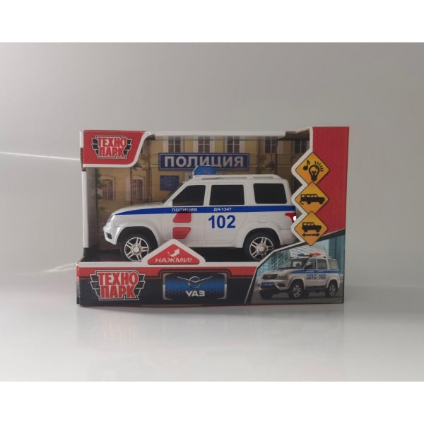 Игрушка "Машина пластик свет-звук UAZ ПАТРИОТ ПОЛИЦИЯ 15,5 см, 2 кн, инер, сереб, кор Технопарк в кор.48шт". Размер: 0.102.