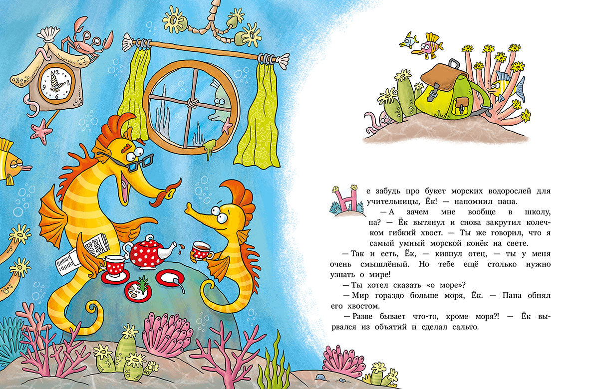 Маленький Ёк — самый умный морской конёк на свете! Так, по крайней мере, считает его папа. Но даже самому умному коньку приходит время отправиться в школу. Правда, сам Ёк этому не очень-то рад, ведь ему впервые придётся надолго расстаться с папой… Да и вообще, неужели учиться может быть интересно и весело?