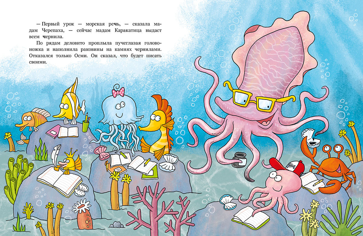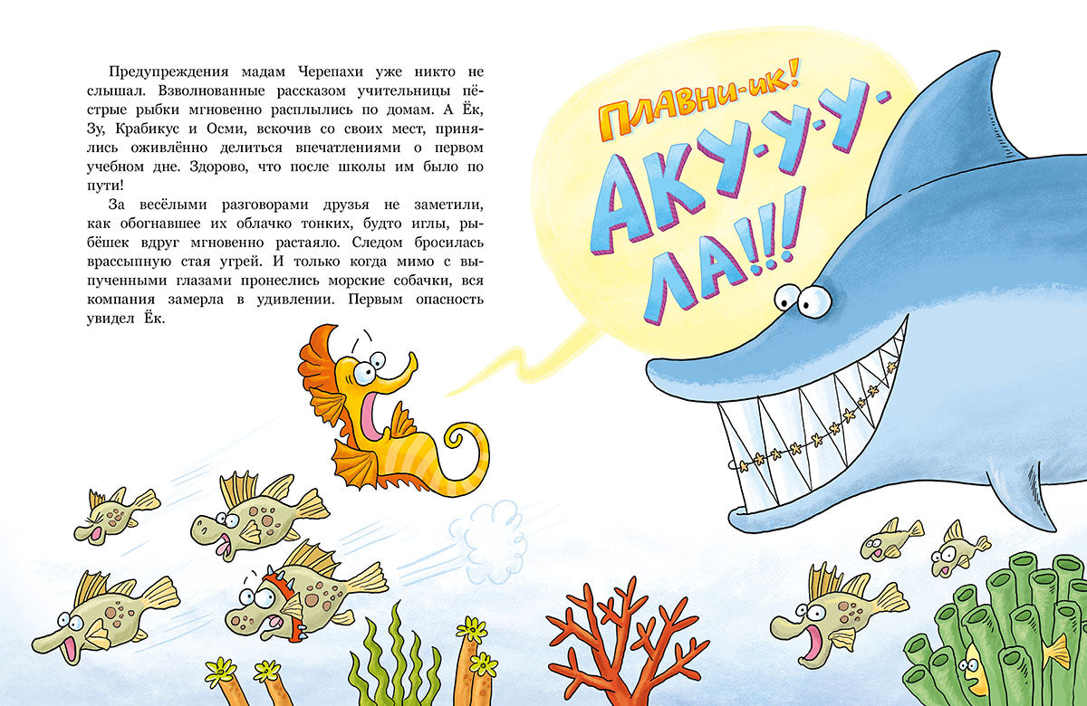 Оказывается, ещё как может! В Подводной школе Ёк узнает, как читать, писать и считать, познакомится с правилами поведения в подводном мире, а главное — встретит настоящих друзей. И, конечно, без приключений не обойдётся, ведь любопытства «первоклашкам» не занимать! О том, как морской конёк Ёк и маленький осьминог Осми удирали от акулы, чуть не попались в рыбацкие сети и нашли затонувший пиратский корабль, читайте в озорной сказке Юлии Весовой с иллюстрациями самого весёлого художника Александра Голубева.