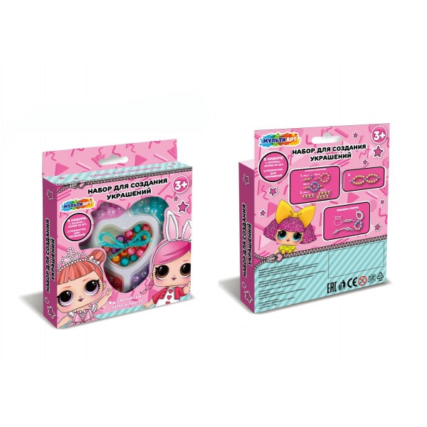 Набор бисера и бусин сердечко, куколки модницы МУЛЬТИ АРТ в кор.2*288шт
