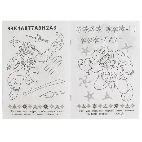 Ниндзя-динозавры. Раскраска-малышка. 16 заданий. 145х210мм. Скрепка. 8 стр. Умка в кор.100шт