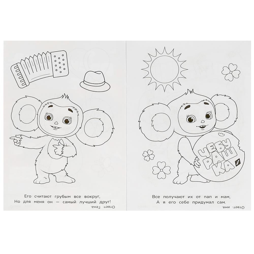 Новые приключения Чебурашки. Раскраска-загадка. 140х200 мм. Скрепка. 16 стр. Умка в кор.50шт