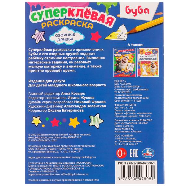Книга "Озорные друзья. Буба. Суперклёвая раскраска. 195х275мм. Скрепка. 16 стр. Умка в кор.50шт". Издательство: Умка.