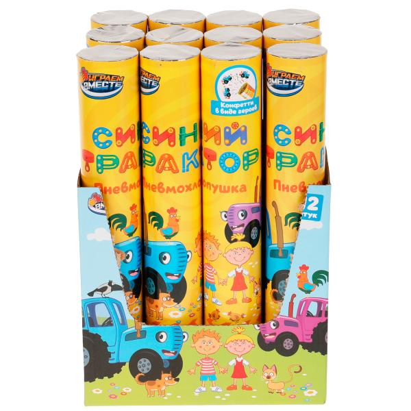 Пневмохлопушка с конфетти в виде героев СИНИЙ ТРАКТОР 30см. ИГРАЕМ ВМЕСТЕ уп-12шт в кор.6уп
