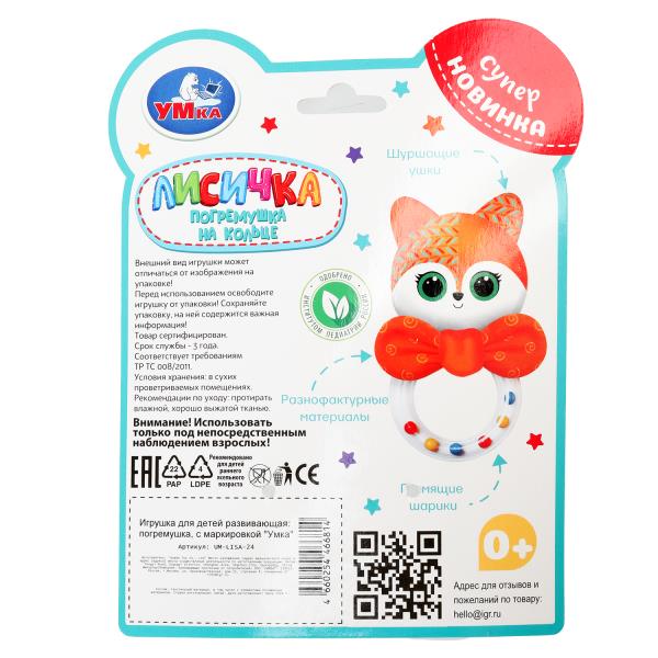 Погремушка на кольце Лисичка на блист. Умка в кор.250шт