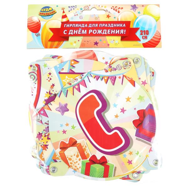 Игрушка "Праздничная гирлянда 210 см, с днем рождения Товары для праздника в кор.12*24шт". Размер: 0.089.