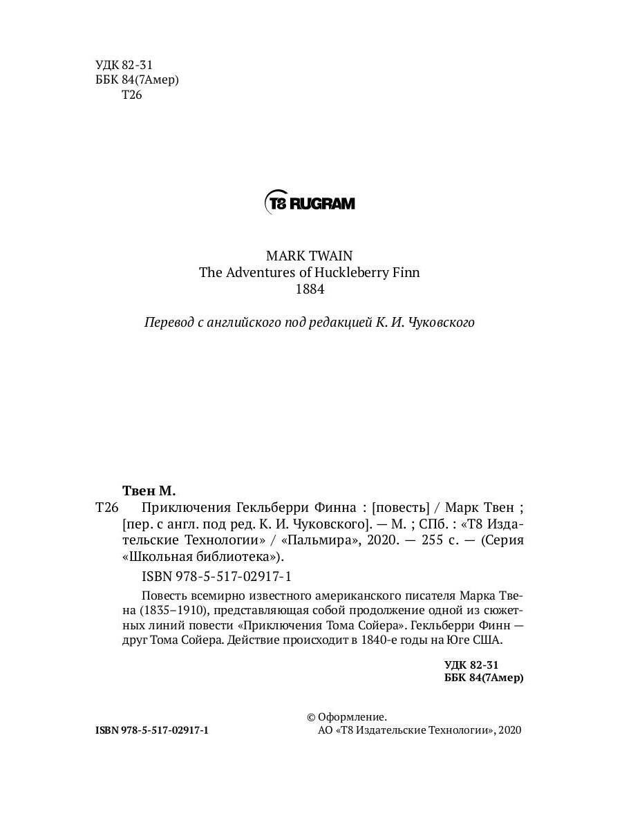 Автор: Твен Марк, «Приключения Гекльберри Финна»: Повесть всемирно известного американского писателя Марка Твена (1835-1910), представляющая собой продолжение одной из сюжетных линий повести «Приключения Тома Сойера». Гекльберри Финн — друг Тома Сойера. Действие происходит в 1840-е годы на Юге США.
