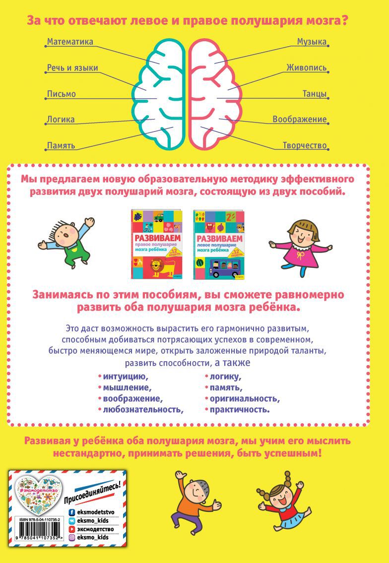Правое и левое полушария мозга обеспечивают единую работу организма, но при этом каждое полушарие выполняет определённые задачи и отвечает за конкретные функции. Работа их взаимосвязана. Для формирования гармонично развитой личности необходимо уделять одинаковое внимание развитию двух полушарий мозга. Именно это является целью предлагаемой методики. Задача этого пособия — оказать родителям квалифицированную помощь в развитии левого полушария. Увлекательные игровые задания, рассчитанные на 12 недель занятий, помогут малышу развить логику, математические и языковые способности, память, абстрактное мышление, научиться делать аналитические выводы и анализировать, стать более усидчивым и аккуратным. В сочетании с пособием по развитию правого полушария мозга – развитие ребенка будет гармоничным.Адресовано любознательным дошкольникам и их заботливым родителям и может использоваться, как для индивидуальных занятий, так и в группах.