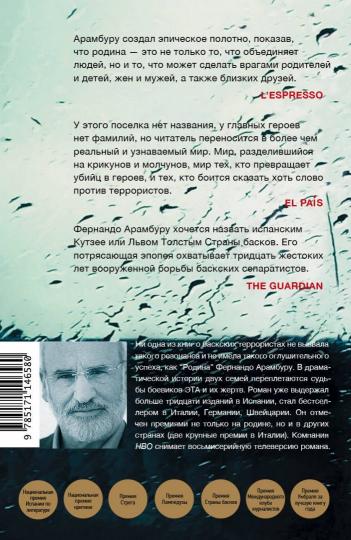 Фернандо Арамбуру написал роман “Родина” после того, как баскская террористическая группировка ЭТА объявила о прекращении вооруженной борьбы. Тогда, по словам писателя, у него возникла острая потребность разобраться, что же происходило с людьми в этот трагический период, почему убийства и насилие вызывали у многих поддержку или сочувствие, в то время как несогласные хранили боязливое молчание. Отказываясь от роли судьи, Арамбуру на примере двух баскских семей, по сути, рассказывает недавнюю историю целого народа. Это роман о любви и ненависти, дружбе и предательстве, вере и отчаянии.За последние десятилетия ни одна книга в Испании не была удостоена стольких наград, как “Родина” Ф. Арамбуру. Роман был назван лучшей книгой года, получил Национальную премию по литературе, Премию критики, премию Международного клуба журналистов, итальянские премии Стрега и Лампедузы. Общий тираж уже перевалил за миллион. В 2020 году на экраны выйдет телеверсия романа (8 серий), которую снимает компания HBO.