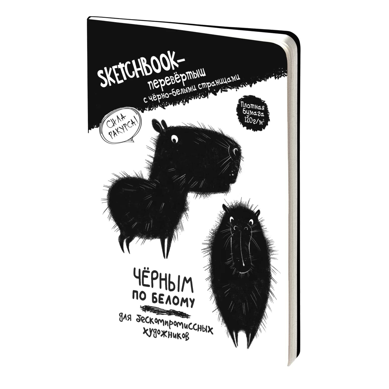 Скетчбук - перевертыш ЧЕРНЫМ ПО БЕЛОМУ \ БЕЛЫМ ПО ЧЕРНОМУ (обложка с капибарой)