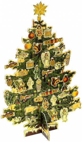 В роскошном картонном конверте с прозрачным окошком скрывается большая модель елки из необычайно прочного толстого лакированного картона, лист с фигурками для украшения этой елки, лото "Рождественская елка", которое маленькие подписчики журнала "Светлячок" получили вместе с декабрьским номером в 1911 году, а также книжка "Рождественский дед" - сказка в стихах, проиллюстрированная самим Б. В. Зворыкиным.
