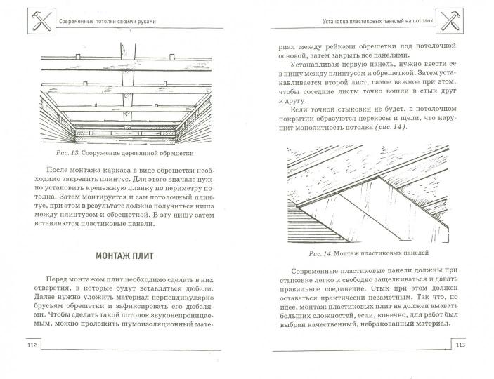 Однако современный строительный рынок предлагает массу других вариантов потолка - подшивной, подвесной, натяжной, деревянный, гипсокартонный, панельный, реечный и т. д. У каждого способа есть свои преимущества и недостатки, о которых в этой книге будет рассказано очень подробно, с пошаговым описанием самого процесса монтажа потолка. Поэтому читателю останется лишь выбрать наиболее подходящий для себя вариант и приступить к самостоятельному воплощению задуманного в жизнь. Выполнение работы своими руками, в свою очередь, позволит сэкономить немалые средства из семейного бюджета.