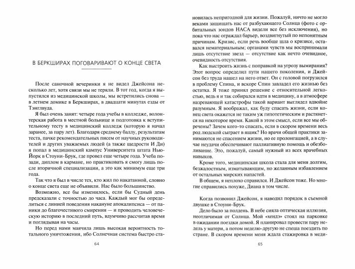 Однажды вечером трое молодых людей вышли на лужайку Казенного дома, чтобы полюбоваться звездами. И увидели, как звезд не стало.Прошли годы. Звезды так и не вернулись на небосвод, один из юношей выучился на врача, девушка ушла в религию, а второй юноша стал богом.«Спин» — это роман о предсмертном рывке человечества в космос, о несовершенстве демиурга, о поисках спасательного круга в бушующем океане глобальной катастрофы. Но в первую очередь это роман о любви.Это текст, созданный рассказчиком в медикаментозном бреду. Это коварная, обманчиво прозрачная, но тесная паутина слов. Это твердая научная фантастика, где рожденный автором мир не вызывает ни малейших вопросов. Это сказание о том, как люди проживают год за годом, ежедневно глядя в глаза неизбежной смерти. Это роман-поэма и роман-какофония, где биг-бэнд Дюка Эллингтона громыхает «Гарлемским воздуховодом», Майлз Дэвис пронзительно выводит «Семь шагов на небеса», а Аструд Жилберту с хрипотцой поет «Лицо, которое люблю».И любовь разорвет нас в клочья. Снова.
