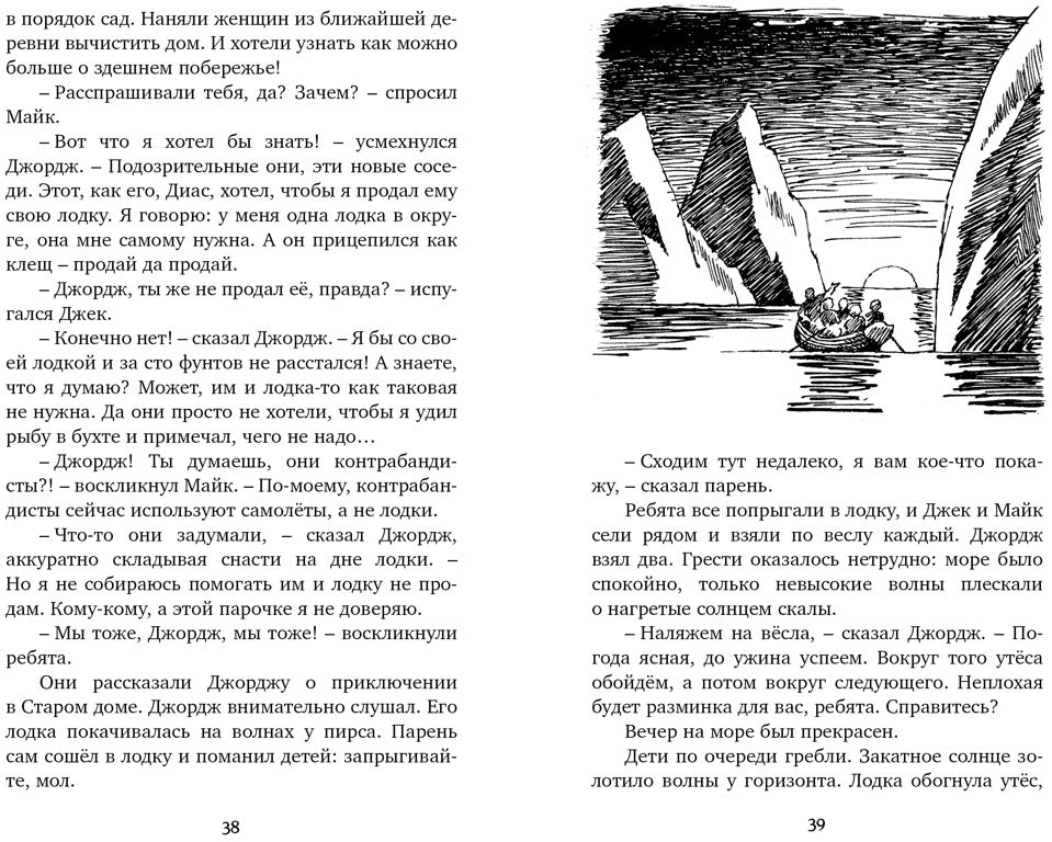 Пегги, Майк, Нора и Джек проводят каникулы на море, в живописном местечке, окружённом пещерами и скалами. Однажды, гуляя по пляжу, они обнаружили утёс, а в нём - проход к заброшенному дому на скале. По легенде, в этом доме когда-то находили укрытие контрабандисты и шпионы. А какие тайны хранит он сейчас? Ребята решают непременно это выяснить. Их ждёт немало удивительных открытий…Для детей среднего школьного возраста. Пять причин купить 1Место действия книги - жуткие подземелья с потайными ходами и потайными комнатами - вызывает чувство волнения и удивления, усиливая впечатления от чтения. 2Читатели могут наблюдать, как персонажи растут и эволюционируют на протяжении всей истории, проходя через личные испытания и трудности. 3Книга «Тайна старинного грота» отлично подойдет для юных читателей или для совместного чтения взрослых и детей, позволяя начать приобщаться к миру литературы с малых лет. 4Энид Блайтон вводит в повествование хорошо проработанных и сложных злодеев, делая сюжет книги более захватывающим и непредсказуемым. 5Книга включает в себя элементы истории и археологии. Главные герои узнают о прошлом старого грота, развивая любознательность и интерес читателей к изучению старины.