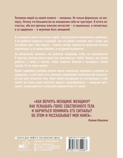 Половина людей на нашей планете - женщины. Но только формально, по паспорту. Потому что большинство их женщинами себя не чувствуют. И оттого несчастны, ибо все причины женских несчастий - и социальных, и личностных, и со здоровьем - в неумении быть женщиной.Я исправляю своим клиенткам судьбу, попутно решая медицинские проблемы. Я не работаю отдельно с психикой, как это делает психолог, или с телом, как это делает врач. Моя задача - склеить натуру, сделать ее целостной по всем параметрам: и на уровне физики, и на уровне психологии.Не обязательно понимать, как работает телевизор, чтобы им пользоваться! Я практик, поэтому просто научу вас пользоваться собой. Покажу, как нужно работать с телом и мозгом, чтобы излечить болезни и выправить линию судьбы. И что этому мешает.Кроме подробного разбора причин ваших жизненных неурядиц и проблем со здоровьем, в этой книге есть комплекс упражнений психотелесной гимнастики для всех сегментов тела. Имея такую инструкцию по эксплуатации к себе самой, вы очень скоро запустите процесс трансформации - очищения организма, самоисцеления и получения удовольствия от жизни.Как вернуть женщине женщину? Как услышать голос собственного тела и научиться понимать его сигналы? Долгожданные ответы на наболевшие вопросы от одного из самых известных психотелесных терапевтов России!