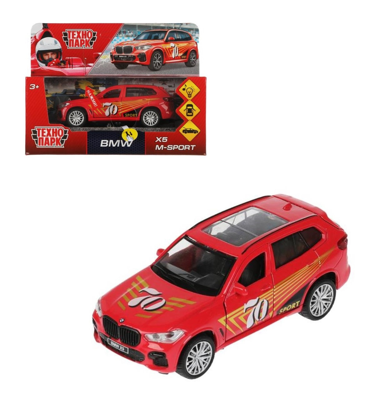Металлическая модель «BMW X5 M-Sport» ТМ «Технопарк» - прекрасный подарок для ребёнка:- звуковое сопровождение- световые эффекты- открываются двери- открывается багажник- инерционный механизм (поставьте машинку на ровную поверхность, потяните назад,
