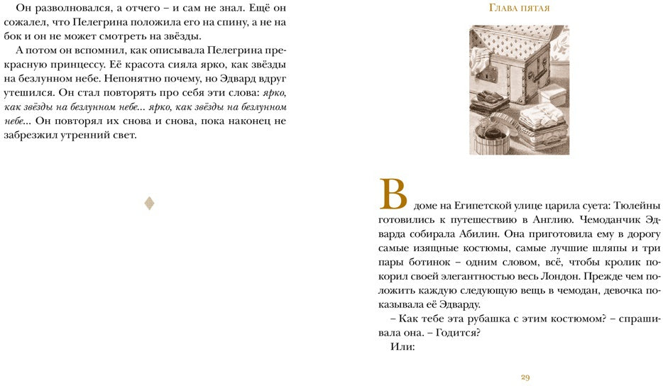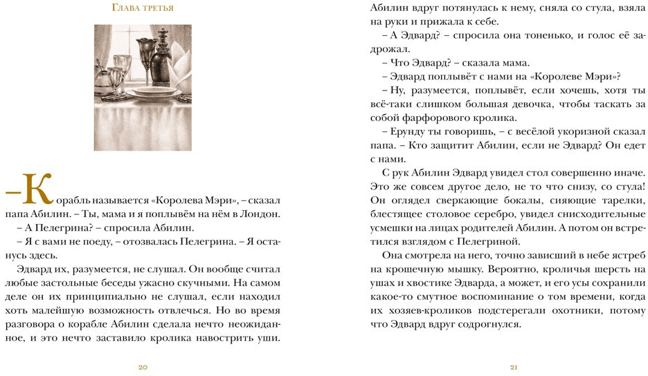 Однажды бабушка Пелегрина подарила внучке Абилин игрушечного кролика по имени Эдвард Тюлейн, которого сделал знаменитый кукольных дел мастер. Абилин просто обожала своего кролика, целовала его красивые длинные уши, наряжала в специально сшитые для него костюмы и каждое утро заводила его золотые часы на цепочке. А кролик был самовлюбленным и бессердечным эгоистом и никого, кроме себя, не любил. Как-то Абилин вместе с родителями отправилась в морское путешествие, и кролик Эдвард, случайно упав за борт, оказался на самом дне океана. Старый рыбак выловил его своей сетью и принёс жене. Потом кролик попадал в разные руки - и хорошие, и плохие. И каждый раз с грустью и тоской вспоминал девочку Абилин, которая его так любила. Холодное сердце кролика постепенно оттаивало, училось отвечать любовью на любовь, и в один прекрасный день Эдвард Тюлейн вернулся к Абилин, которая уже успела стать взрослой.