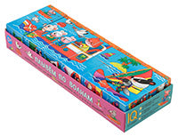 Набор состоит из 12 кубиков размером 4х4 см. Ребёнку нужно сложить картинки из 2, 4 и 6 фрагментов. В этом ему помогут листовки-подсказки с изображением водного транспорта. Далее транспорт можно соединить в любой последовательности, картинки взаимозаменяемы. Во время игры происходит знакомство с понятиями «часть» и «целое», развивается умение работать по образцу. Наклейки на кубики сделаны из качественной гладкой бумаги, которая не портится от игры.