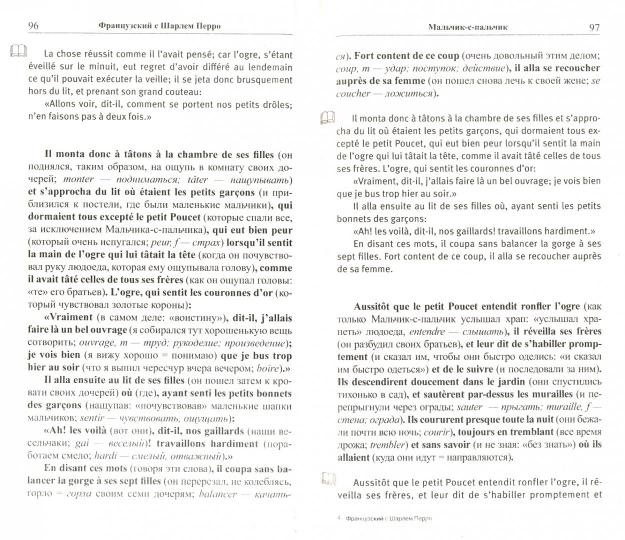В книге предлагаются популярные сказки Шарля Перро из сборника "Сказки матушки Гусыни", адаптированные (без упрощения текста оригинала) по методу Ильи Франка. Уникальность метода заключается в том, что запоминание слов и выражений происходит за счет их повторяемости, без заучивания и необходимости использовать словарь. Пособие способствует эффективному освоению языка, может служить дополнением к учебной программе. Предназначено для широкого круга лиц, изучающих французский язык и интересующихся французской культурой.