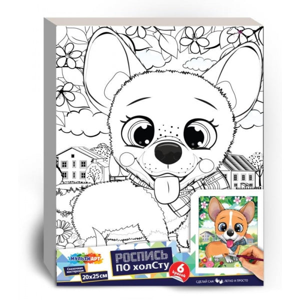 Холст по контуру 20*25 корги в саду МУЛЬТИ АРТ в кор.48шт