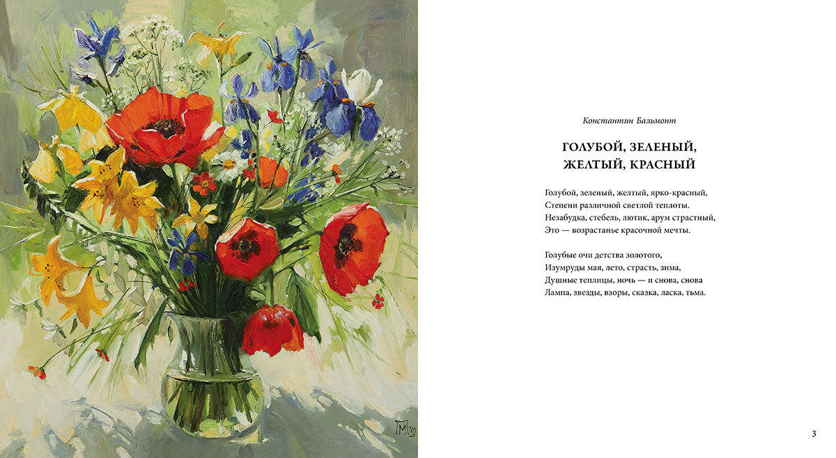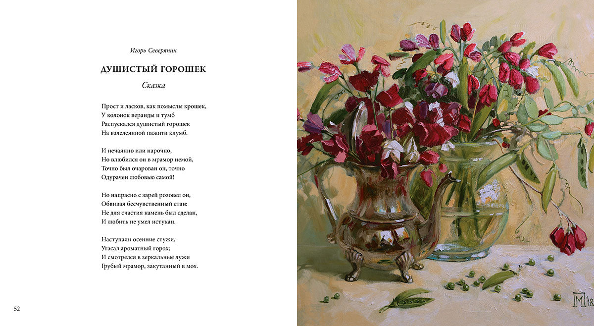 Цветы — особая глава в русской поэзии; они и символ, и знак, и воплощение чистой красоты. Цветы очаровывают душу и утешают сердце, зарождают мечты и пробуждают воспоминания, вдохновляют и приносят радость. Поэтические строки русских классиков XIX–XX веков — Константина Бальмонта и Анны Ахматовой, Афанасия Фета и Ивана Бунина, Валерия Брюсова Игоря Северянина и других мастеров — проведут читателя в цветочный сад, ставший возможным на страницах этой книги: здесь, в великолепных картинах петербуржской художницы Марии Павловой, робкий первый ландыш соседствует с обаятельным георгином, яркие всполохи маков оттеняют фарфоровую бледность лилий, скромные васильки здороваются с безмятежными нарциссами. У каждого из них свое настроение, блестяще вплетенное в образцовые и живописные стихотворные строки и обрамленное роскошными иллюстрациями — чтобы стать настоящим украшением библиотеки читателя.