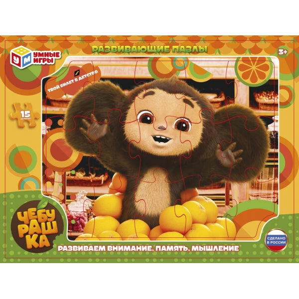 Чебурашка. Пазл в рамке. 15 деталей. Развивающие пазлы. 285х215х2 мм. Умные игры в кор.50шт
