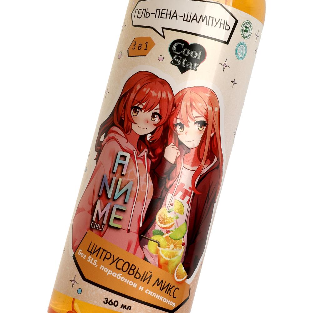 Шампунь-гель-пена аниме2 цитрусовый МИКС 360 мл Cool Star в кор.6шт