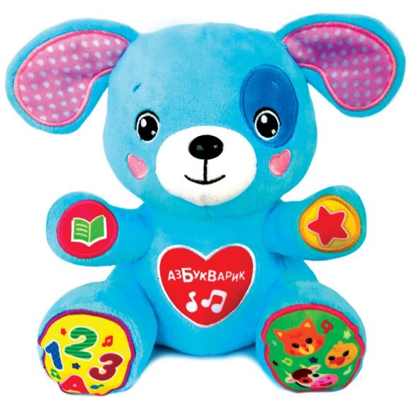Мягкая игрушка Щенок сказочник создана для теплых объятий! Это не просто говорящая плюшевая игрушка – это настоящий друг для малыша. Он знает много сказок, песенок, колыбельных и с удовольствием поделится ими.Сказочник умеет разговаривать голосами зверят и расскажет вашему ребёнку 6 сказок: «Курочка Ряба», «Три медведя», «Солнышко», «Пузырь, соломинка и лапоть», «Репка», «Гав-гав». Он споет 4 обучающие песенки про алфавит, счет, формы и цвета, 6 веселых песенок о зверятах и не только! Все они сопровождаются множеством забавных звуков и фраз. А перед сном мишутка споет чудесные колыбельные песенки.Эта интерактивная говорящая игрушка способствует расширению кругозора и развивает: звуковое восприятие, музыкальный слух, память, мелкую моторику, фантазию, речь и пластику. Сказочник поможет вашему малышу быстро и спокойно заснуть, с мягким щенком сны будут волшебными!