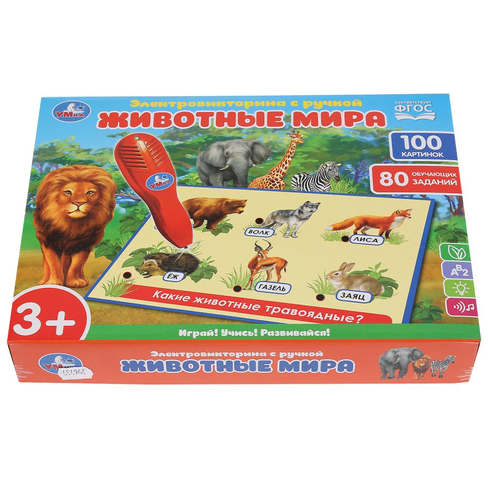 Электровикторина с ручкой животные мира. 100 картинок, 80 обучающих заданий. "Умка" в кор.36шт