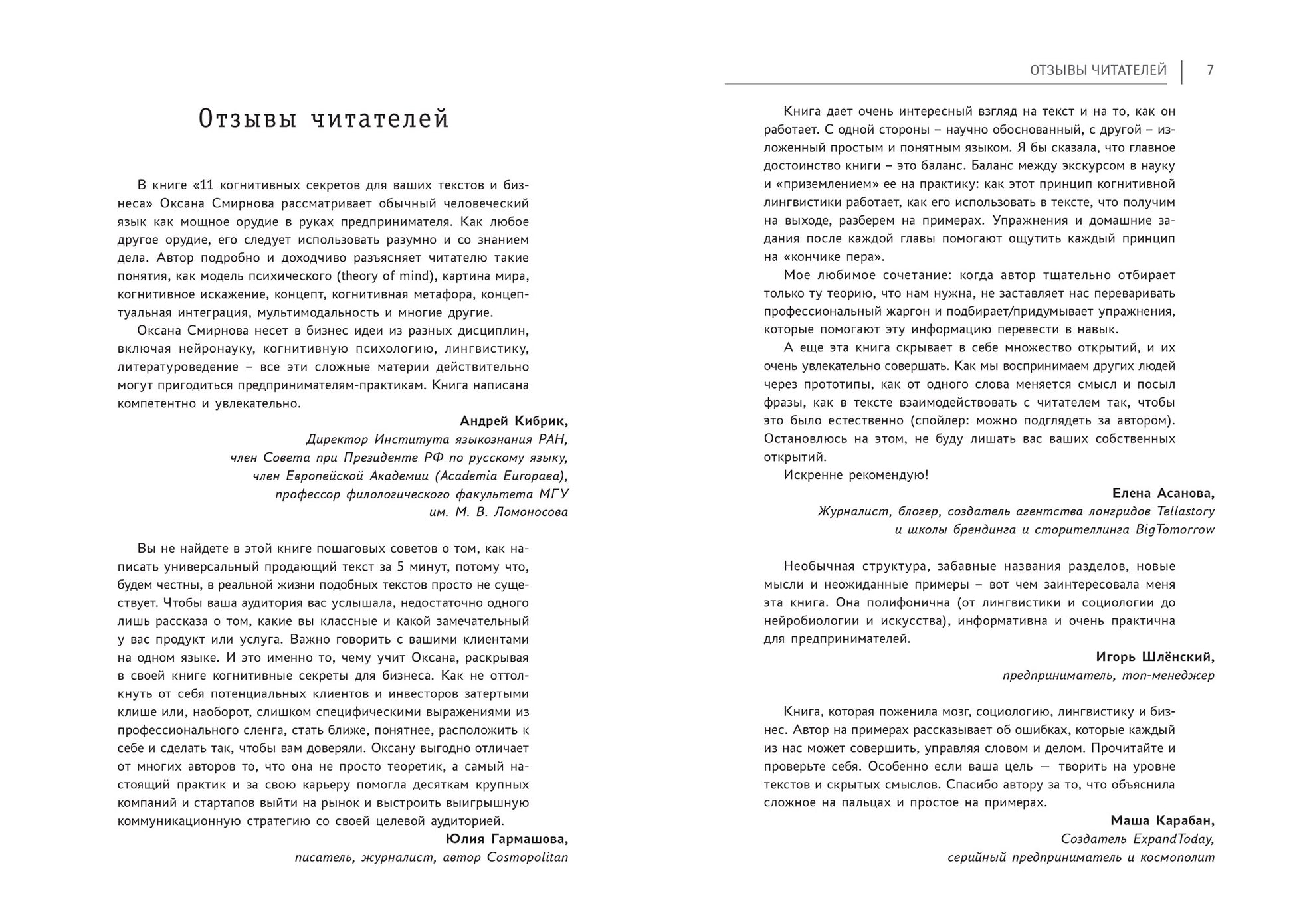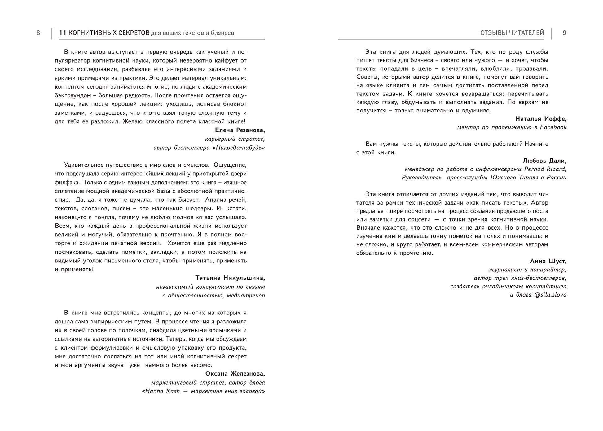 Перегруз информацией, тысячи похожих продуктов и услуг, созданные, словно под копирку подходы и описания... В таком мире мы живем и работаем сегодня. Есть ли шанс привлечь и удержать внимание читателя или слушателя при таком раскладе?Есть. Эта книга о том, как последние открытия когнитивных и нейронаук помогают предпринимателям быть заметнее и убедительнее, вовлекая и увлекая за собой свою «стаю». Язык, сознание и бизнес соединены сегодня в мощную триаду. Вы узнаете, как устроены связи внутри этой триады, а одиннадцать когнитивных секретов откроют вам тайну слов, которые запомнятся надолго и приведут вас к цели.Книга будет полезна предпринимателям, маркетологам, копирайтерам и всем тем, кто создает тексты для бизнеса, каждый день, вовлекая, убеждая и завоевывая аудиторию. Четыре причины купить 1Автор — лингвист, кандидат филологических наук, советник по корпоративным коммуникациям. 2Вы узнаете тайну слов, которые запомнятся надолго и приведут вас к цели. 3Междисциплинарный подход. Включая нейронауку, когнитивную психологию, лингвистику, литературоведение. 4Выводит читателя за рамки технической задачи «как писать тексты». Автор предлагает шире посмотреть на процесс создания продающего поста или заметки для соцсети — с точки зрения когнитивной науки.