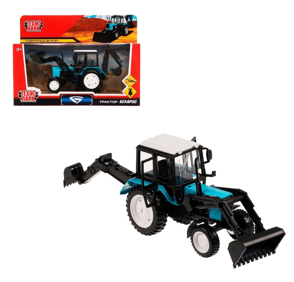 BELARUS-11SL-BU Модель металл свет-звук МТЗ ТРАКТОР "беларус" 11 см, подв. элем, син, кор. Технопарк