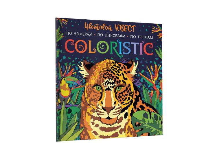 Долгожданная арт-раскраска для детей. Все самые популярные арт-квесты в одном издании.Создай свой шедевр!"Цветовой квест" - серия альбомов для креативного раскрашивания. Наконец и у детей появилось издание для увлекательного творческого досуга. В каждой книге объединены и адаптированы для детей жанры любимых арт-квестов для взрослых: раскраски по номерам, по пикселям, по точкам.- квест по номерам. Раскрась пронумерованные детали рисунка контрастными цветами, специально подобранными художником, - и увидишь неожиданный яркий результат.- квест по пикселям. Заполняй цветом части мозаики и наблюдай, как проявляется скрытая картинка.- квест по точкам. Последовательно соедини точки, чтобы разгадать сюжет картинки - раскрась по собственному вкусу.Coloristic. Цветовой квестВ этом арт-альбоме более 20 картин-загадок в любимых жанрах: анималистика, пейзаж, натюрморт. Угадать, какой именно сюжет на рисунке можно только пройдя цветовой квест. Разгадайте скрытые картины, наполняя изображения цветом.Пять плюсов издания- разнообразие арт-головоломок в одном издании- неожиданные контрасты и оригинальные сюжеты зашифрованных изображений- предусмотренная специально для детей последовательность заданий - по возрастающему уровню сложности- огромный формат - хорошо видны все символы и обозначения, легко раскрашивать, готовую работу можно вырезать по линии обреза и оформить, как произведение собственного творчества- тренировка внимания, развитие фантазии и художественного вкусаЭти уникальные раскраски - волшебное творческое приключение для детей и взрослых.