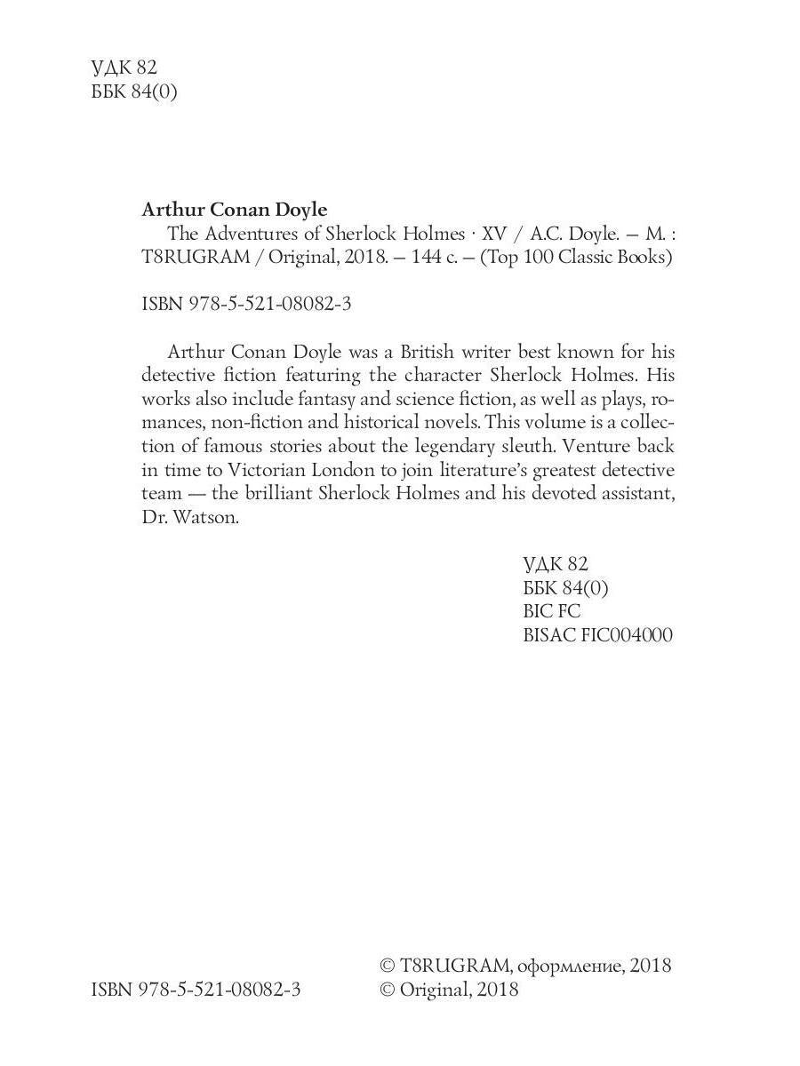 Автор: Дойл Артур Конан, «The Adventures of Sherlock Holmes XV. The Speckled Band and Other Plays. Приключения Шерлока Холмса XV. Пстрая лента и другие пьесы: на англ.яз»: Arthur Conan Doyle was a British writer best known for his detective fiction featuring the character Sherlock Holmes. His works also include fantasy and science fiction, as well as plays, romances, non-fiction and historical novels. This volume is a collection of famous stories about the legendary sleuth. Venture back in time to Victorian London to join literature's greatest detective team — the brilliant Sherlock Holmes and his devoted assistant, Dr. Watson.