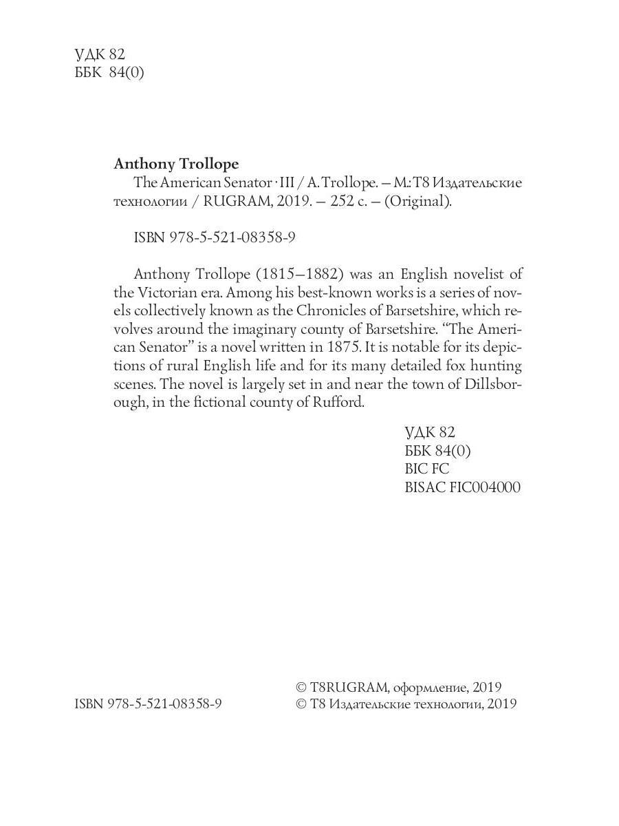 Автор: Trollope A., «The American Senator 3: на англ.яз»: Anthony Trollope (1815—1882) was an English novelist of the Victorian era. Among his best-known works is a series of novels collectively known as the Chronicles of Barsetshire, which revolves around the imaginary county of Barsetshire. "The American Senator" is a novel written in 1875. It is notable for its depictions of rural English life and for its many detailed fox hunting scenes. The novel is largely set in and near the town of Dillsborough, in the fictional county of Rufford.