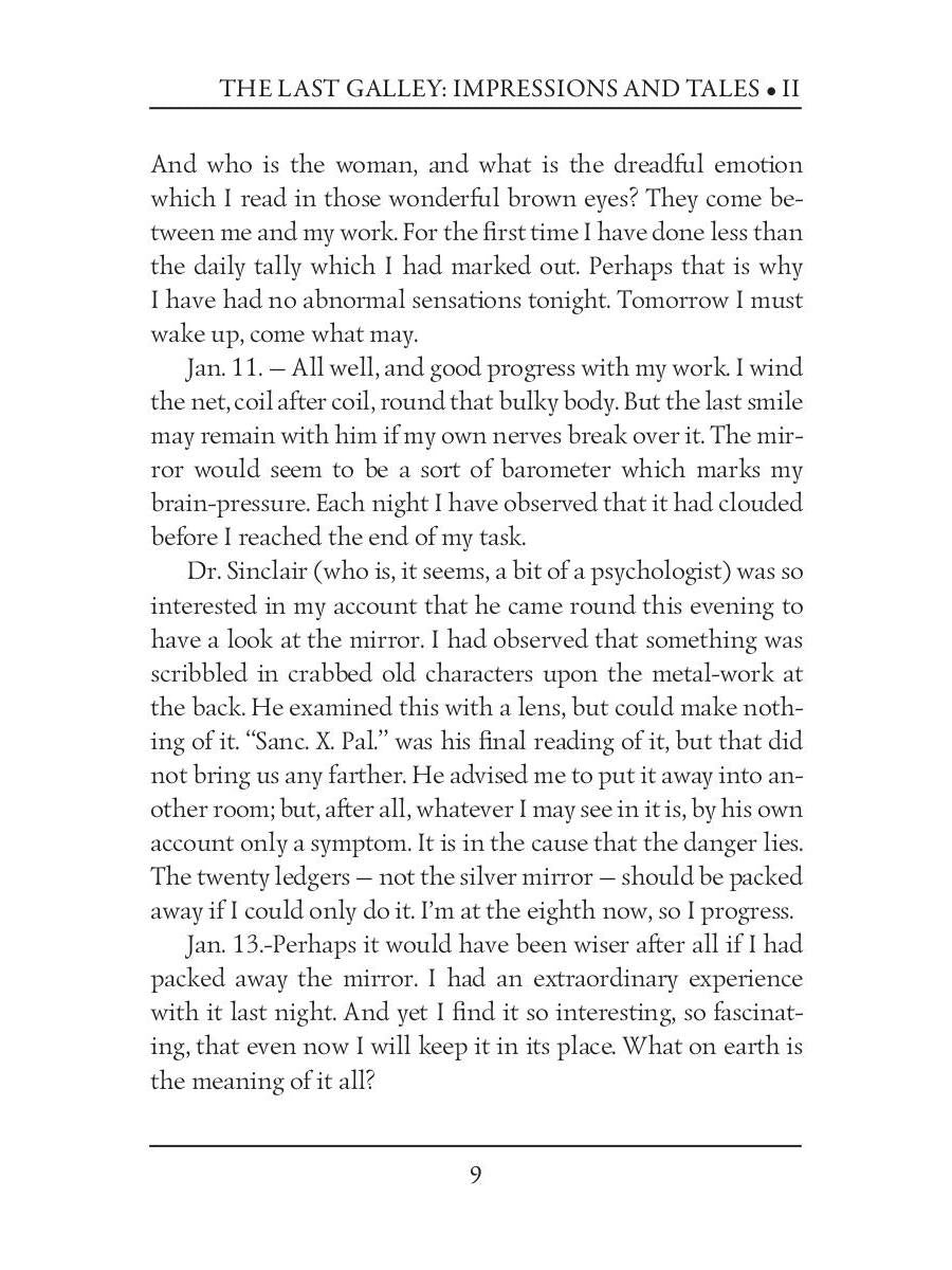 Автор: Doyle Arthur Conan, «The Last Galley: Impressions and Tales 2 = Последняя галерея: впечатления и рассказы 2: на англ.яз»: Arthur Conan Doyle was a British writer best known for his detective fiction featuring the character Sherlock Holmes. His works also include fantasy and science fiction, as well as plays, romances, non-fiction and historical novels. "The Last Galley: Impressions and Tales" is the second volume in the series, consisting of wonderful short stories like "De Profundis," "Out of the Running," and "The Lord of Falconbridge."