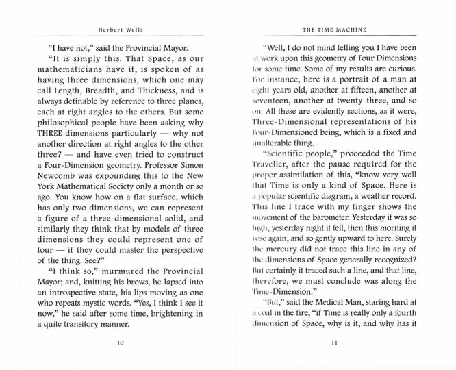Герберт Уэллс (1866-1946) был первопроходцем в жанре научной фантастики, он одним из первых применил и развил тему путешествия во времени. В романе "Машина времени" (1895) описан смелый научный эксперимент: его автор переносится более чем на восемьсот тысяч лет вперед! На первый взгляд, общество будущего выглядит достаточно привлекательно: технический прогресс остановился, но его достижения столь велики, что люди ведут относительно безбедное существование. Однако более близкое знакомство с потомками раскрывает страшные тайны их жизни и выносит приговор перспективам всего человечества. В нем читается призыв не отделять развитие технологий от гуманистических ценностей и помнить о природе Homo sapiens - не просто человека, но человека разумного.