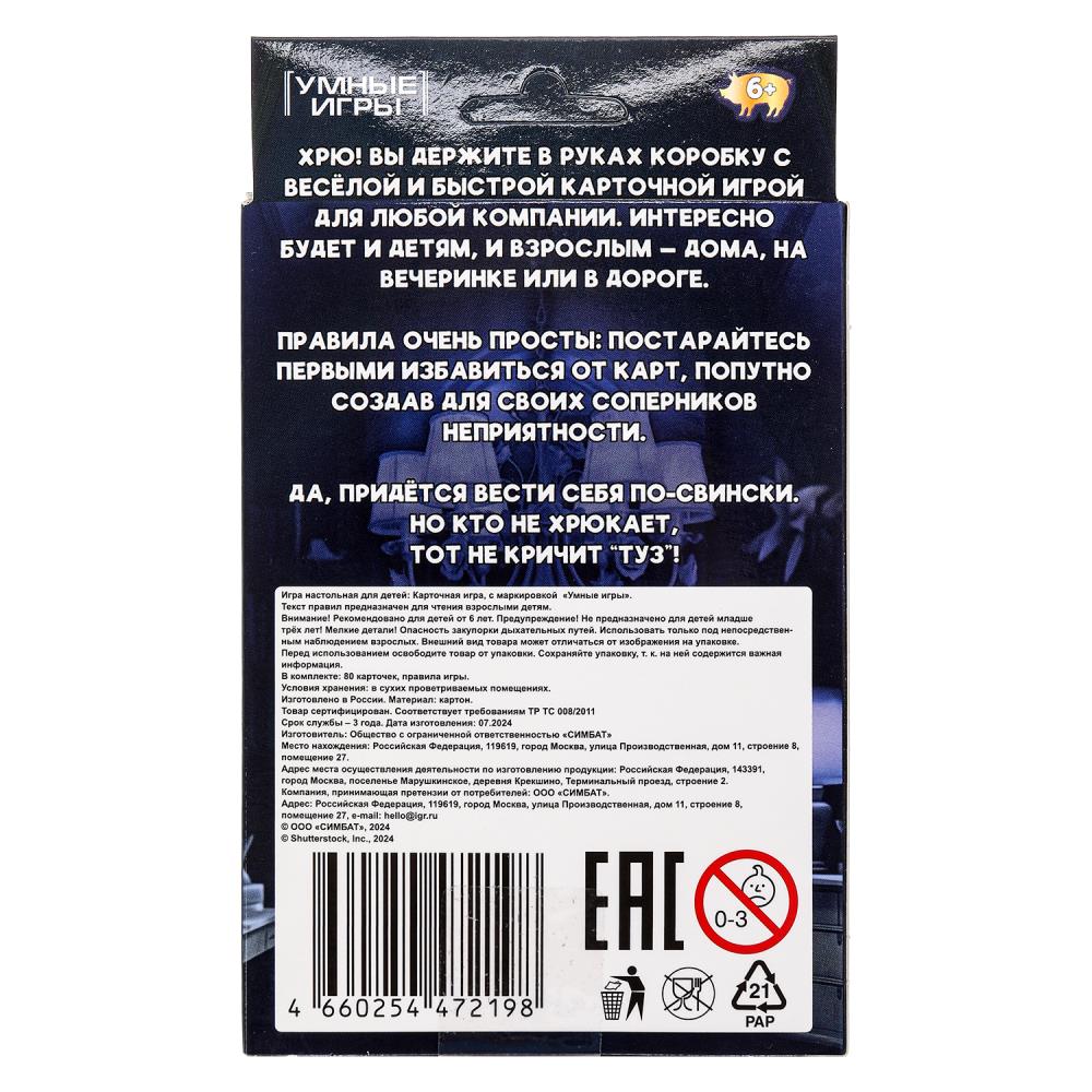 Игрушка "Uno. Свин и туз. Карточная игра. 80 карточек. 92х130х22мм. Умные игры в кор.100шт". Размер: 0.04257.