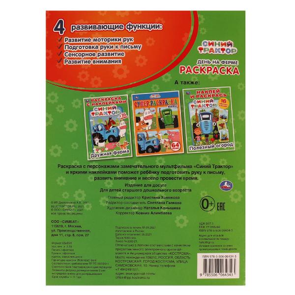 Раскраска с блестящими наклейками «Синий трактор. День на ферме» ТМ «УМка» станет прекрасным подарком для поклонников известного мультсериала про приключения весёлого трактора:- 16 сверкающих наклеек- картинки для раскрашивания тщательно прорисованы- к