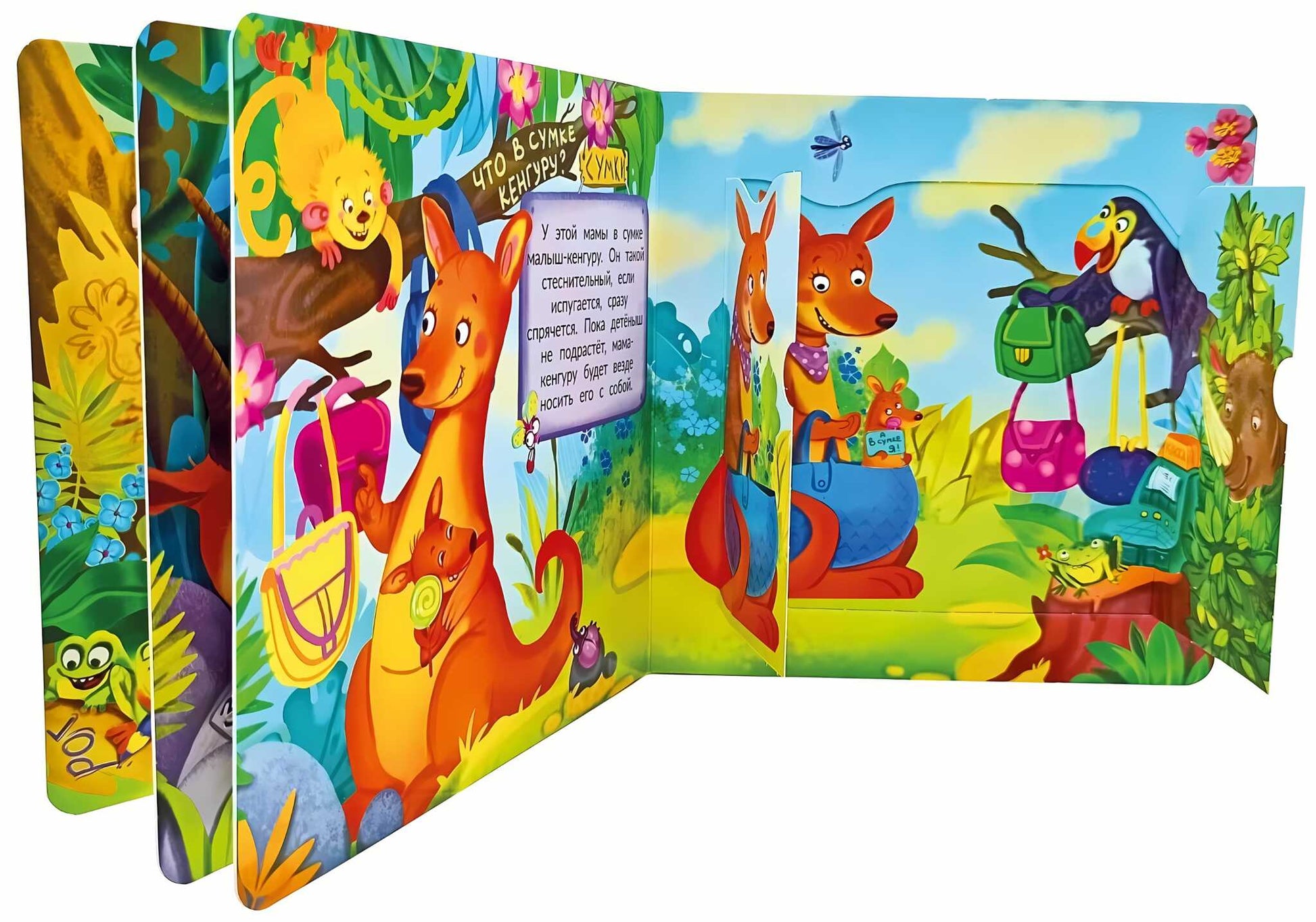 Книжка с двойными окошками ЗООПАРК Детская книжка с окошками ЗООПАРК приведет в восторг любого ребенка. Зачем тигру полоски? Что в сумке у кенгуру? Для чего носорогу рог? Что едят панды? Зачем слону хобот? Почему у жирафа длинная шея? Ответы на эти вопросы маленькие почемучки смогут отыскать на страницах книги. На каждом развороте окошко с двойными створками, которые раскрываются в полноценную картинку.