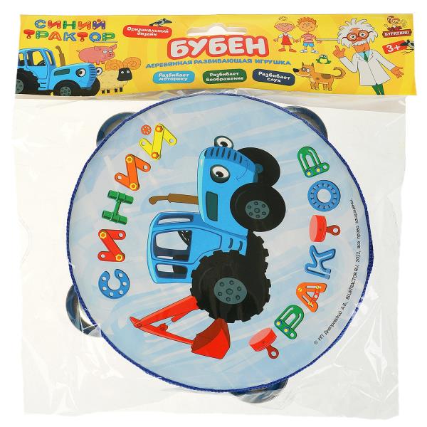 Игрушка деревянная бубен СИНИЙ ТРАКТОР 1 шт. в пак. Буратино в кор.100шт
