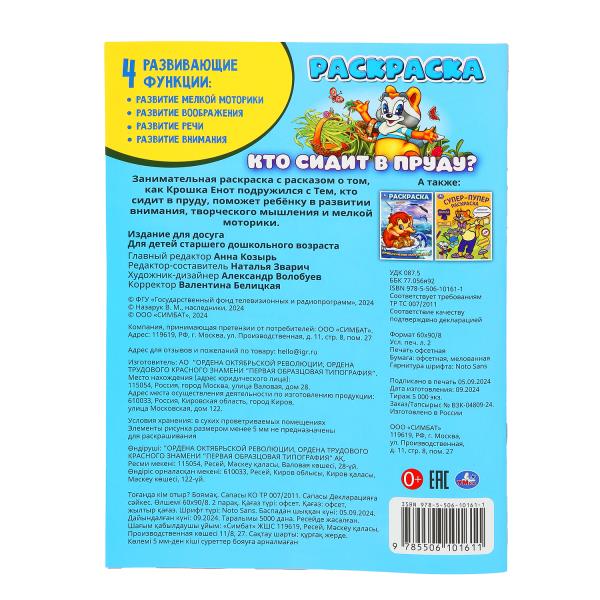 Кто сидит в пруду? Экран. Раскраска. 214х290 мм. Скрепка. 16 стр. Умка в кор.50шт