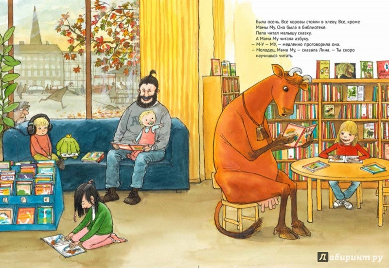 В книге МАМА МУ ЧИТАЕТ Мама Му и Кракс спорят о том, должна ли корова уметь читать, и пытаются выяснить, почему трава зелёная, а молоко белое. Юя Висландер - известная шведская детская писательница, самое знаменитое произведение которой - серия историй о любознательной корове Маме Му и философствующем вороне Краксе. Эти истории Юя придумала вместе с мужем Томасом. Прошло уже 20 лет, Томаса нет в живых, а популярность Мамы Му всё растёт. Сейчас по "Маме Му" вышло 8 красочных книг с иллюстрациями нашего любимого Свена Нурдквиста, созданы мультфильмы, радиопостановки и множество спектаклей. Многие книги серии публикуются в России впервые. Переиздания опубликованы в новом переводе, формат книг приближен к оригиналу (такой же, как в серии о Петсоне и Финдусе). Серия регулярно пополняется новыми книгами. Компьютерные игры про Маму Му и Кракса переведены на русский язык, также существуют театральная постановка и полнометражный мультфильм по-русски.