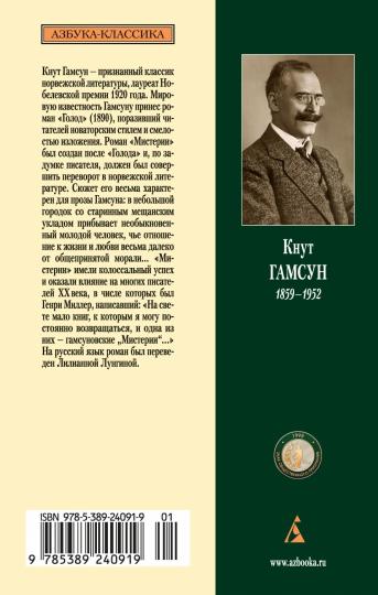 Аннотация к книге "Мистерии" Гамсун К.:Кнут Гамсун — признанный классик норвежской литературы, лауреат Нобелевской премии 1920 года. Мировую известность Гамсуну принес роман «Голод» (1890), поразивший читателей новаторским стилем и смелостью изложения. Роман «Мистерии» был создан после «Голода» и, по задумке писателя, должен был совершить переворот в норвежской литературе. Сюжет его весьма характерен для прозы Гамсуна: в небольшой городок со старинным мещанским укладом прибывает необыкновенный молодой человек, чье отношение к жизни и любви весьма далеко от общепринятой морали... «Мистерии» имели колоссальный успех и оказали влияние на многих писателей ХХ века, в числе которых был Генри Миллер, написавший: «На свете мало книг, к которым я могу постоянно возвращаться, и одна из них — гамсуновские „Мистерии“…» На русский язык роман был переведен Лилианной Лунгиной. Читать дальше…